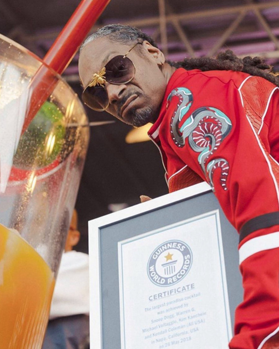 作为说唱圈的 OG,Snoop Dogg 的脑洞可不仅仅限于音乐方面。这不,在上周的纳帕谷音乐节上,狗爷就又达成了一个 “成就”。这次是制成了一杯世界上最大的鸡尾酒。这是狗爷与厨师 Hubert Keller 以及 Michael Voltaggio 一起完成的作品。这杯鸡尾酒高达一人之高,也因此刷新了最大号鸡尾酒的吉尼斯世界纪录。随后 Snopp Dogg 也在其 Instagram 上晒出了吉尼斯官方颁发的纪录证书分享喜悦。