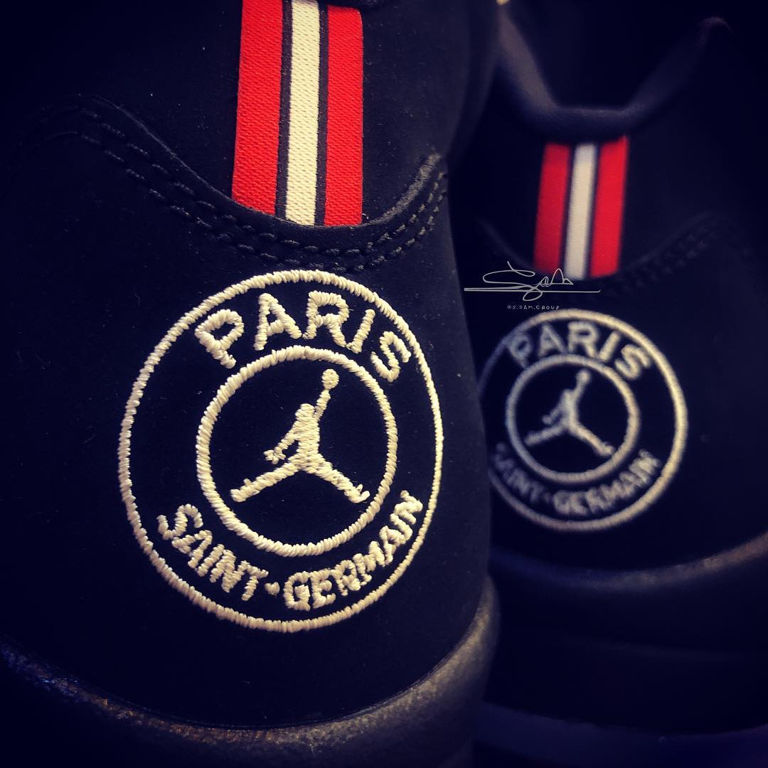 这双 Air Jordan 5 “Paris Saint-Germain” 由黑色牛巴革打造而成,并绣有 “75” 字样,后跟与鞋底印有 “Paris Saint-Germain” 字样彰显身份,鞋垫印有法语,意为 “这里是巴黎”。