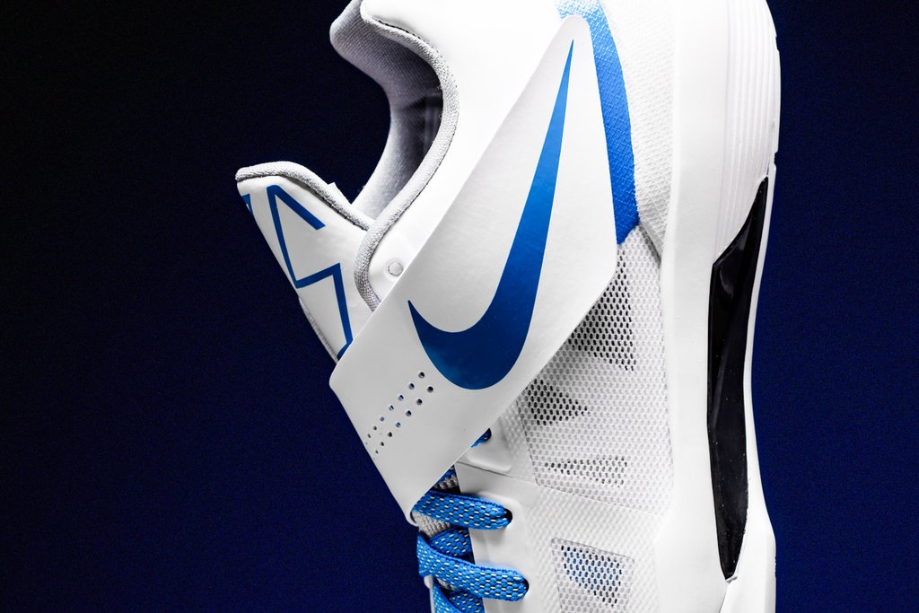 这双 Nike KD 4 QS “Thunderstruck” 将在下周正式发售,简约的白蓝搭配,呈现了熟悉又活力十足的雷霆队装扮。