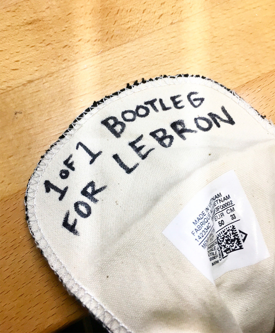 特意为詹姆斯打造,鞋舌内侧写有 1-of-1 的字样,如果你也想穿一双带有钩子的 Converse,不妨考虑自己动手!