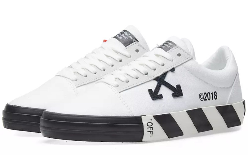 鞋款整体造型与 Vans Authentic 非常相似,以经典黑白为主调,细节设计中饱含 OFF-WHITE 经典元素,鞋面上的箭头 Logo,中底处的黑白条纹,鞋身内侧的标语元素都极具辨识度,整双鞋最有趣的设计在于类似泡沫塑料的外底,不知实用性如何。
