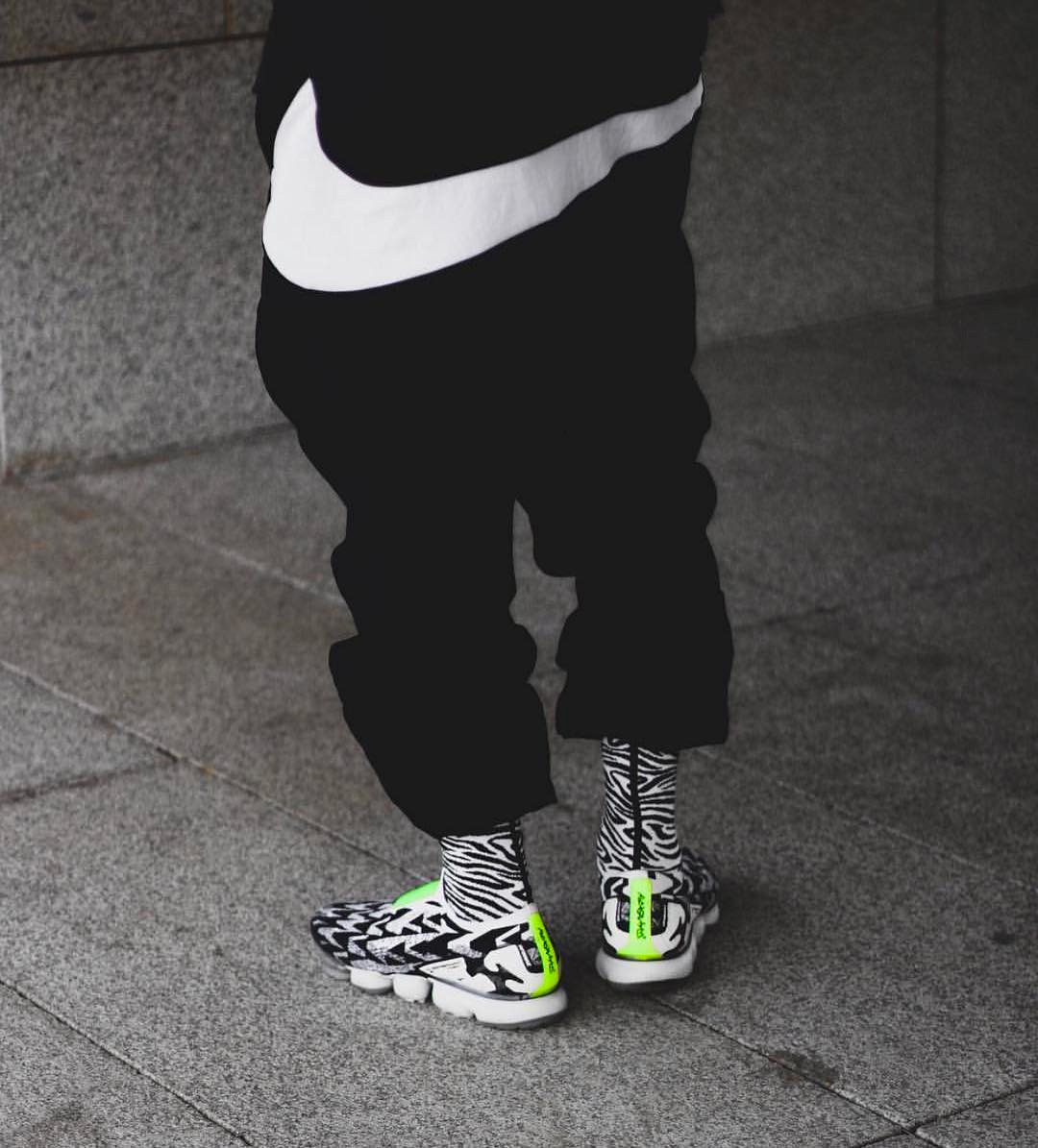 不过小编的穿搭没有这张图里的演示帅气,因为它搭配了 VERTEX LONDON 的黑白斑马袜,在色调上保持一致的同时,又注入了新的亮眼细节,真的是花了心思的搭配!
