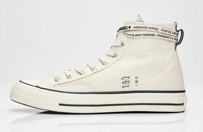 选用经典的高帮 Chuck Taylor 1970 与低筒 One Star 两款鞋型,将鞋身布料采用 “内外翻转” 设计,在米白色帆布之上,呈现洗标等鞋身内的细节,而反观鞋子内部才是真正的深色鞋面,令人印象深刻!
