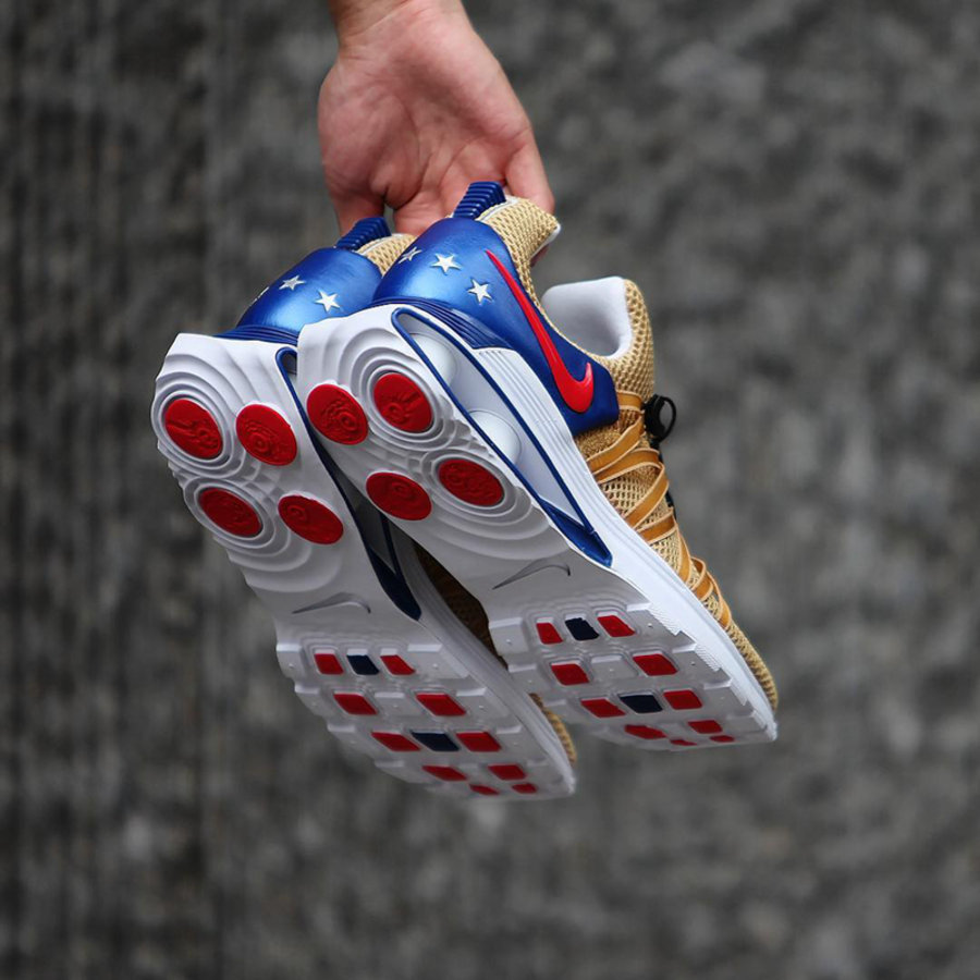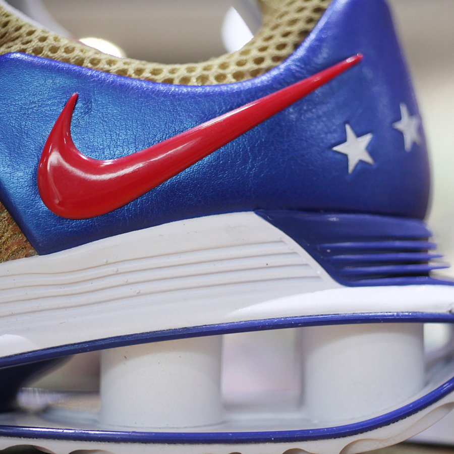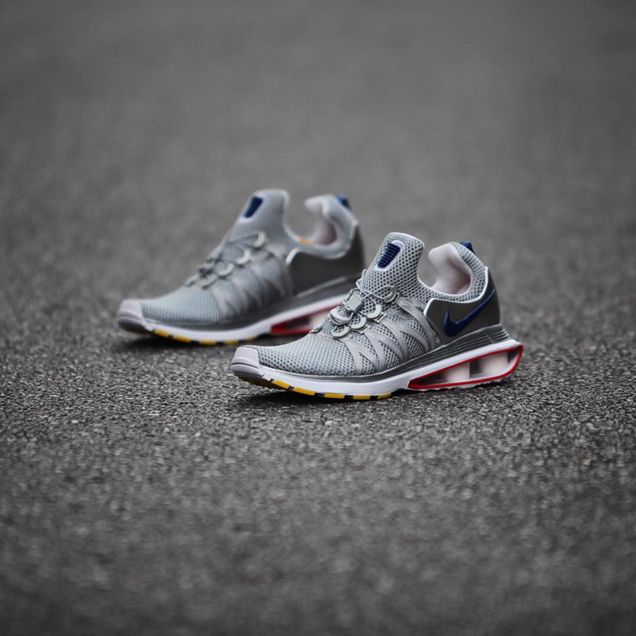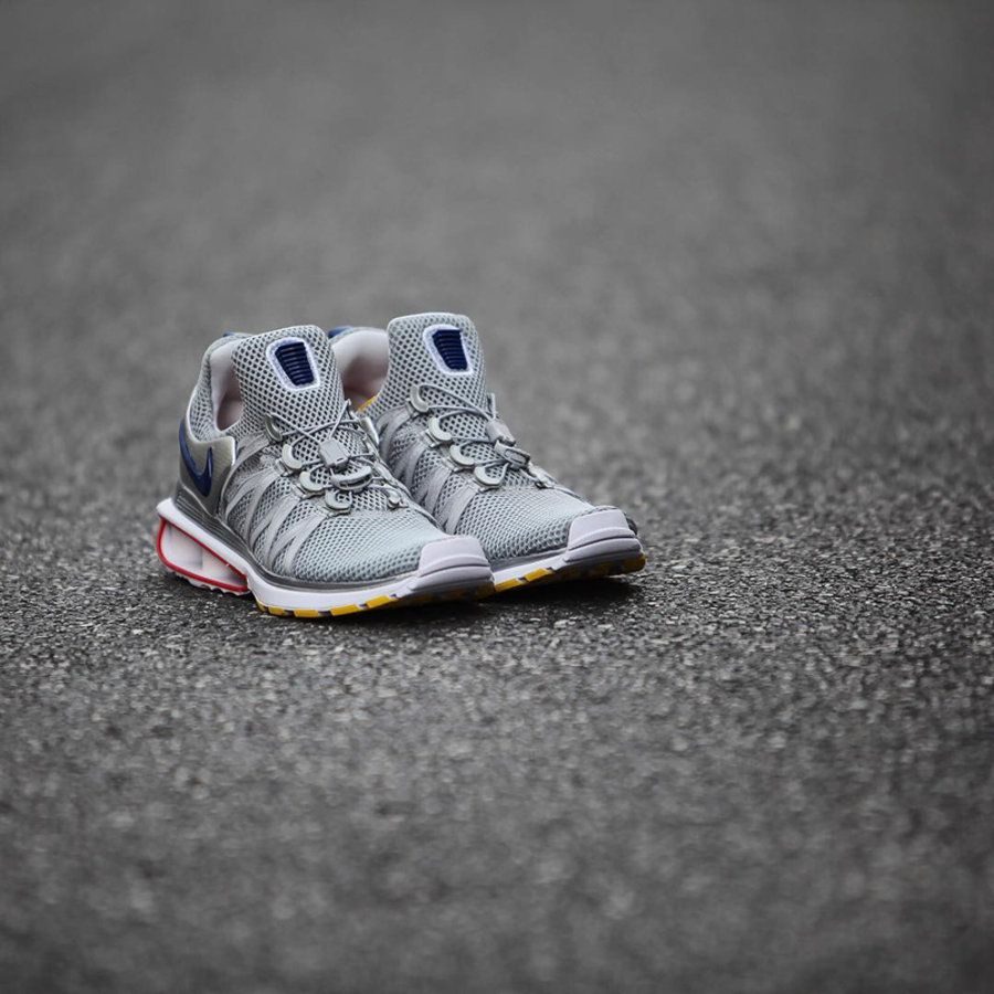 轻薄网布鞋面搭配脚感澎湃的 Shox 缓震科技,穿着舒适。此次推出两款配色,以金银两色搭配红蓝两色点缀,色彩华丽质感独特细节丰富,兼顾颜值与脚感,值得入手。
