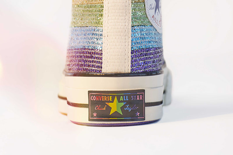 今年,所有 Converse Pride 系列由 LGBTQ 支持者、Happy Hippie Foundation 创始人 Miley Cyrus 设计,涵盖鞋款和服饰等整套街头穿搭。包括 Chuck Taylor All Star厚底高帮鞋、Chuck 70 彩色亮片拼接高帮鞋,以及 Chuck Taylor All Star 波点印花帆布鞋,整个系列后跟标志全部用彩色字体呈现,格外独特。服装包括套头帽衫和运动裤,服装的袖子和裤腿上均饰有彩虹亮片条纹。