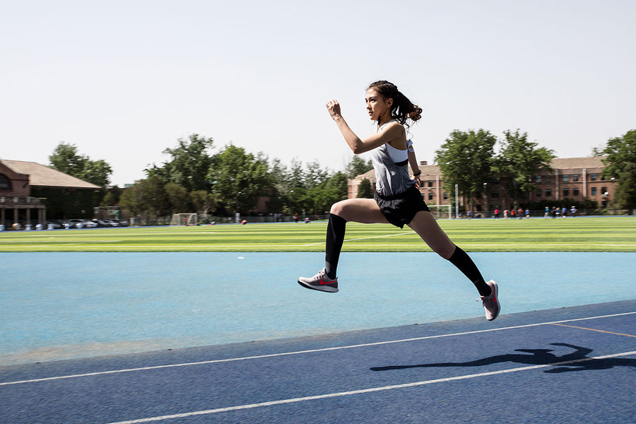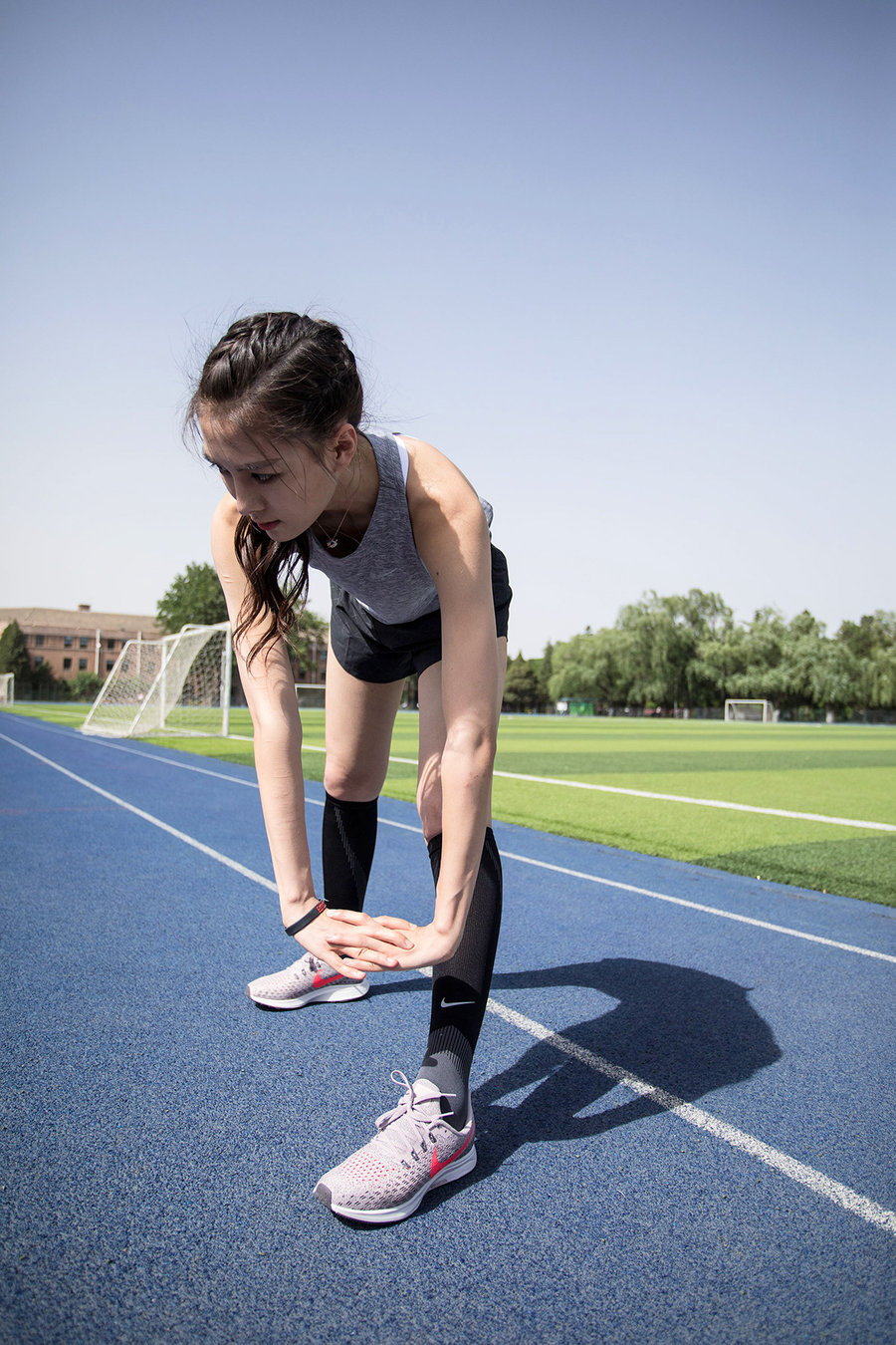 A:是的,虽然我是跳远运动员,但我也很喜欢跑步,天气好的时候会去操场,其他时间泡在健身房。一般会做一些核心和有氧。