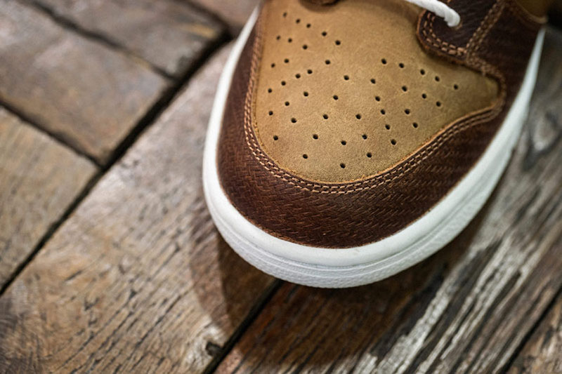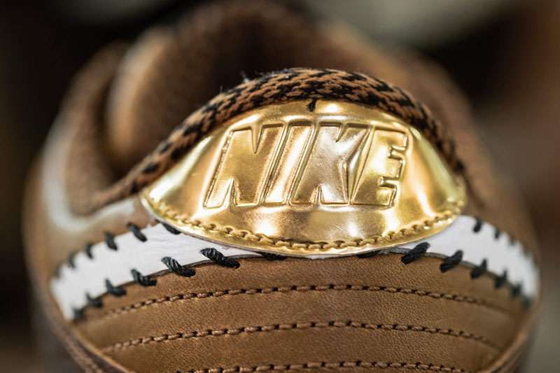 鞋身采用地板纹理与老式缝线营造古朴的球馆气氛,将球馆纪念招牌置于鞋舌之上,致敬意味颇为浓厚!