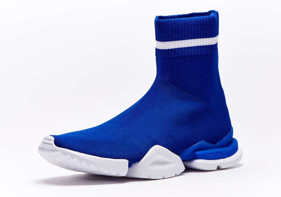 其中 Run.r 使用高帮编织袜套打造鞋面,整体以皇家蓝与白色为主调,除了鞋帮上的白色线条点缀外,还搭载夸张厚实的白色鞋底,时尚感极强,与此前 Vetements 联名同款。