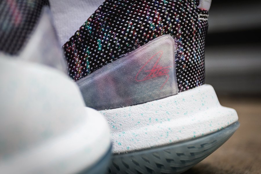 首先拿到球鞋第一感受非常轻,不仅得益于首度开启的低帮模式,承袭 4 代的全针织鞋面更功不可没。