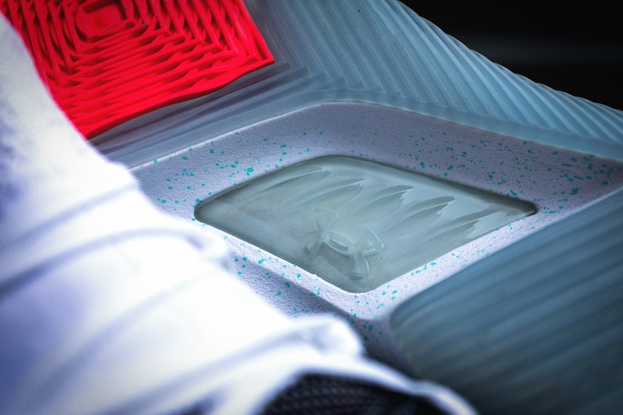 Dave Dombrow:库里希望每时每刻都能挥洒自如,通过迅速移动将对手轻松甩在身后。他想要一双无需刻意去适应就能舒适贴合,像双脚自然延伸一般的超凡战靴。基于这些讨论,Curry 5 采用 Anafoam 材质实现对库里足跟的完美包裹,轻质鞋面帮助库里保持轻盈,出色的抓地力更能帮助库里完成高难度突破动作。