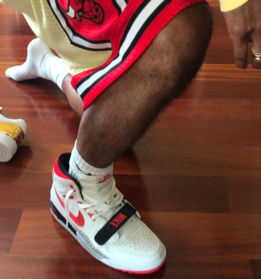 鞋身绑带元素则来自于 Nike Air Trainer,使得整体又有了一些 Air Yeezy 的感觉,MJ 本人也曾经在赛场上上脚过这款经典鞋型。