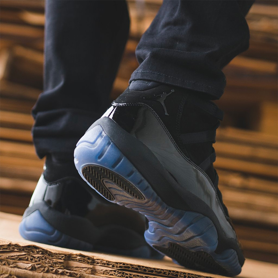 酷黑笼罩的鞋身,后跟 Jumpman Logo 采用类似金属的质感呈现,对于广大喜欢小黑鞋的玩家来说,黑鞋能应对各种场合,怎么穿都有绝佳的气质表现,肯定是必入款。