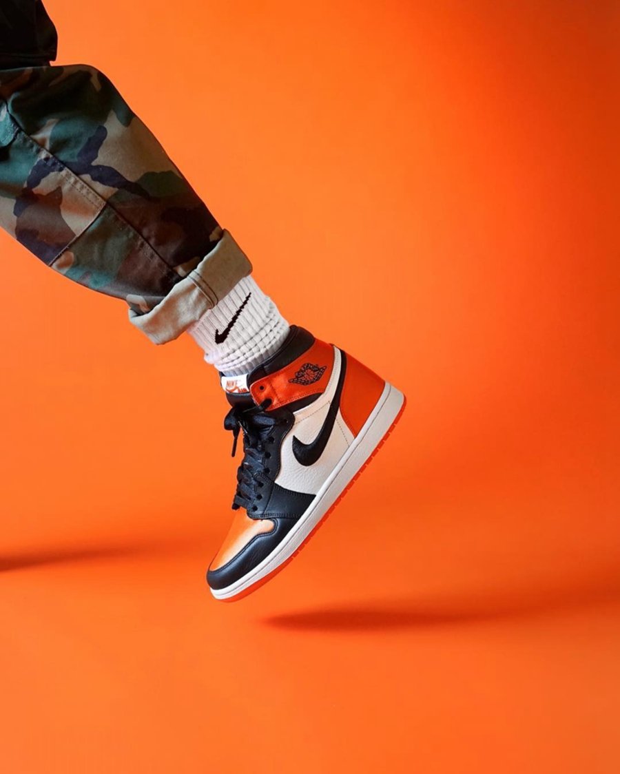 Satin 丝绸 AJ1 首次在大中华区上架发售,此前仅在海外发售的红、蓝版本早已炒到万元开外。丝绸版本再加上 “黑扣碎” 配色,引爆众人眼球。