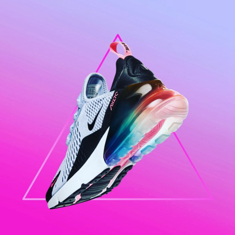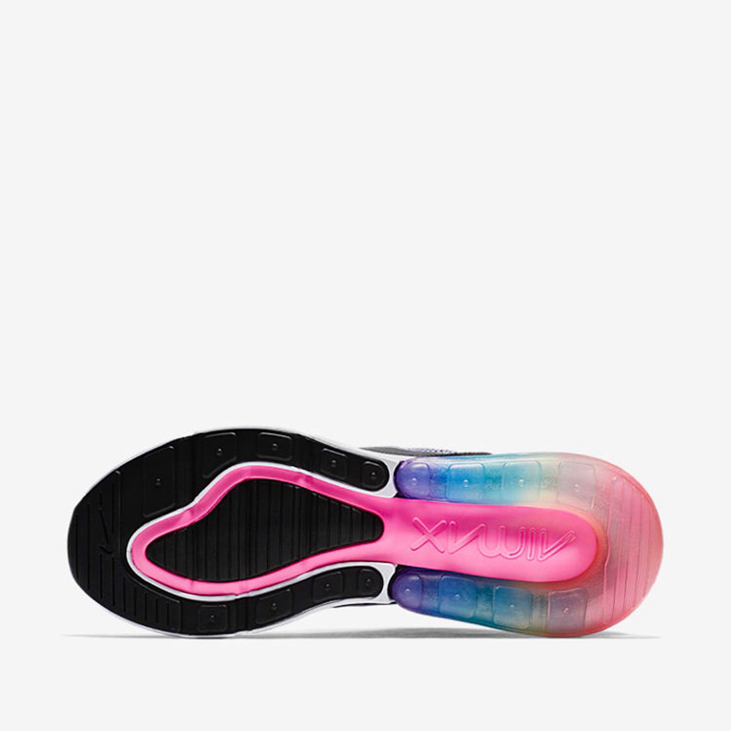 如果你觉得 Betrue 系列的 VaporMax Plus 太过鲜艳,那可以尝试 Air Max 270。鞋面主体为素雅的灰黑色,后跟气垫为彩虹色,搭配粉色发泡部分,低调又不失清新色彩。鞋面大网眼材质清爽透气,后跟气垫脚感澎湃,不输 VaporMax。货号:AR0344-500