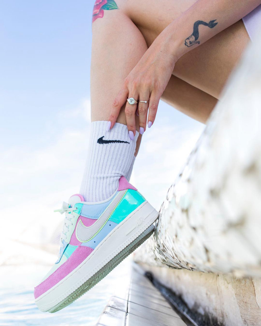 今年的复活节彩蛋 Air Force 1,鞋面由多种颜色的麂皮、荔枝皮、漆皮等材质拼接而成,搭配网布材质,色彩清新质感不俗。经典的 Air Force 1 鞋型再度推出清新的彩蛋配色,收藏穿着皆宜。货号:AH8462-400