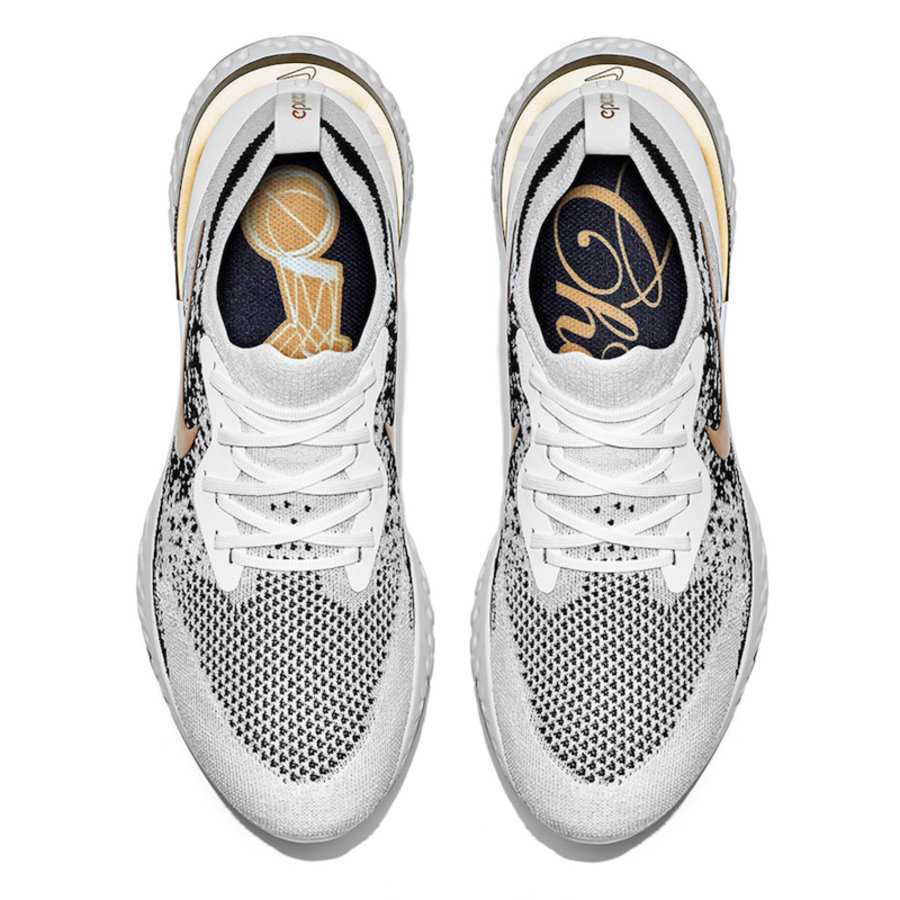 为纪念金州勇士队夺得 NBA 总冠军,Nike 为勇士全队打造了冠军专属版 Epic React Flyknit。