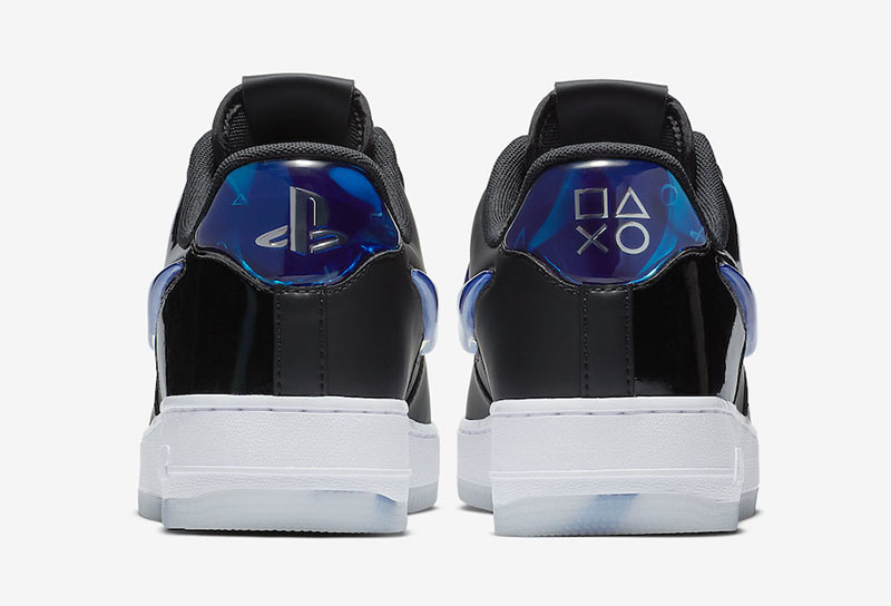 鞋身以象征 Sony Playstation 主机外观的黑色为主调,两侧 Swoosh 与后跟采用晶莹剔透的蓝色橡胶材质打造,隐约浮现的 PS Logo 与标志性的按键符号,同乳白色果冻大底中暗藏的细节相呼应,无论对于游戏玩家还是 Sneakerhead,绝对具有着极大的诱惑力!
