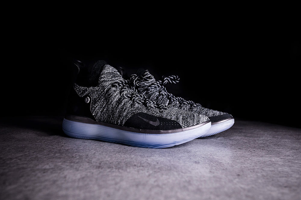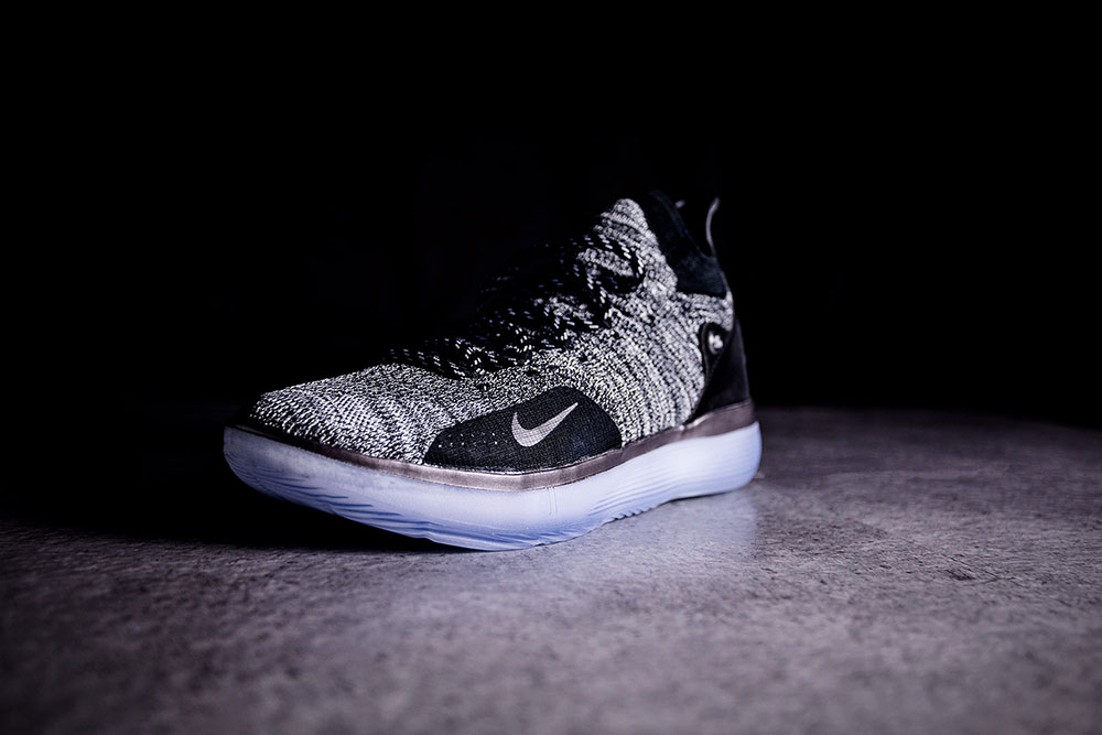因为杜兰特本人非常喜欢 Flyknit Trainer 和 Epic React 跑鞋的鞋面脚感,所以 KD11 依旧延续了 Flyknit 科技打造鞋面。