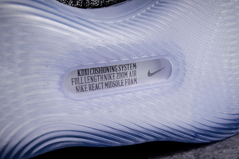 根据设计师张传禧所说,KD11 是让脚感的舒适度和回弹力两者中找到完美的平衡点。根据设计图可以看到橡胶杯状外底将 Nike React 泡棉和 Zoom Air 气垫包裹在其中。