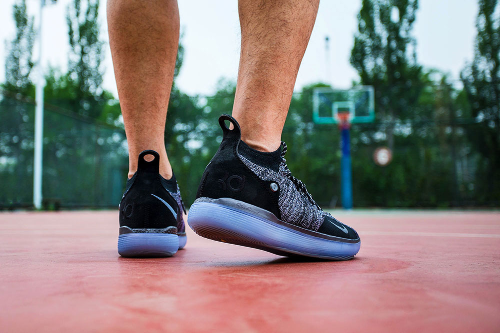 强劲而稳定是小编给 KD11 抓地力的定义,S 型水波纹状的纹路,搭配水晶底材质,在启动和急停的过程中,鞋底发出 “唧唧” 的摩擦声,没有出现丝毫拖沓感。