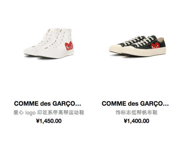 经典的爱心 T 恤和 Converse 联名鞋款都有,款式还很全,不用担心买到假货,放心下单吧!
