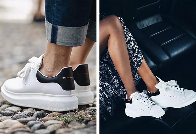 厚底小白鞋一直是街头的明星款式,舒适高档的小牛皮鞋面,颇具高街时尚气质的加厚鞋底,都让 Alexander McQueen 的这双小白鞋别具魅力。