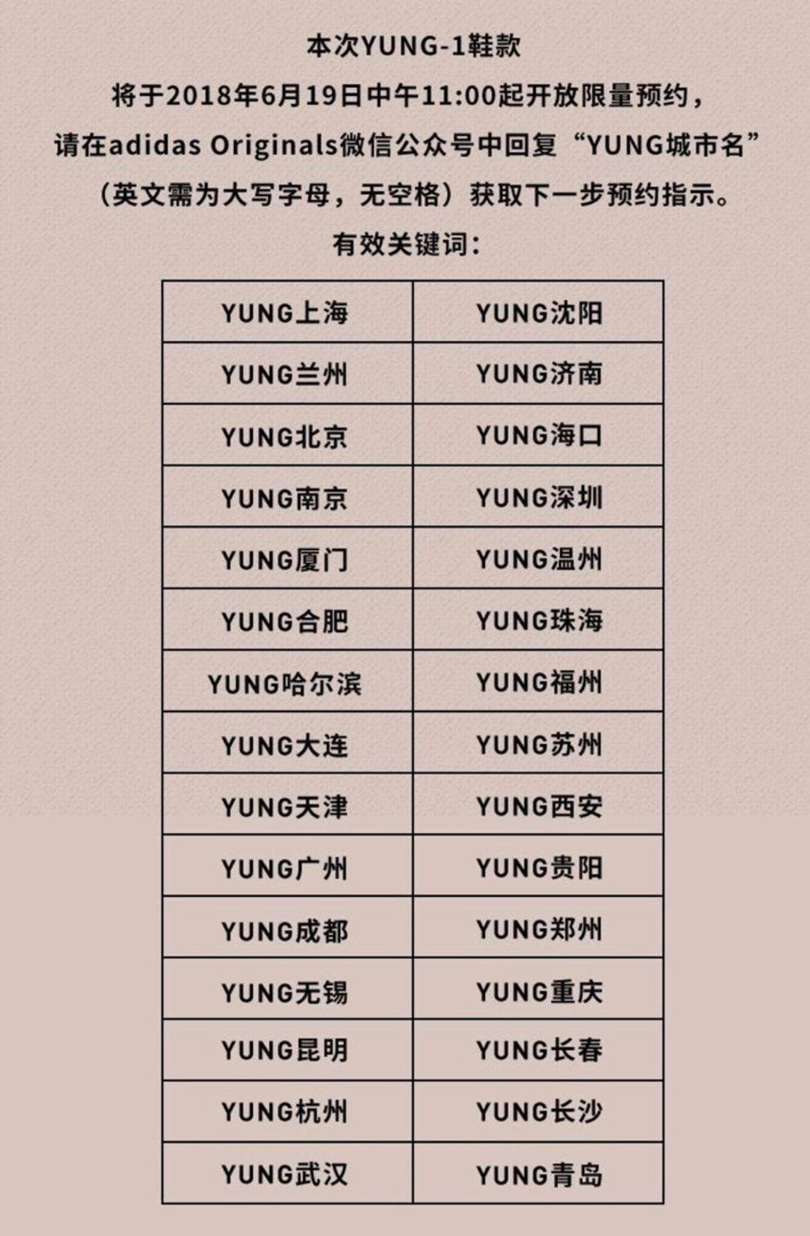 今天 adidas Originals 官方公众号开启了这双鞋的限时预约,从 11 点开启截止到 12 点关闭预约通道,此次将根据微信公众号后台收到的顺序,实行先到先得进行购买,将会在 6 月 22 日在 adidas Originals 官方公众号公布购买资格。