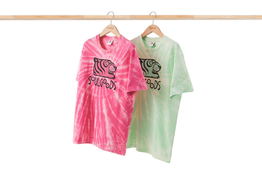 本轮单品中,SOULGOODS 初创时即被大家熟知的虎头 Logo 再度成为主角,推出撞色虎头 T 恤和手工扎染虎头 T 恤。配件方面 New Era 联名棒球帽将回归,还有超大虎头 Logo 浴巾推出。