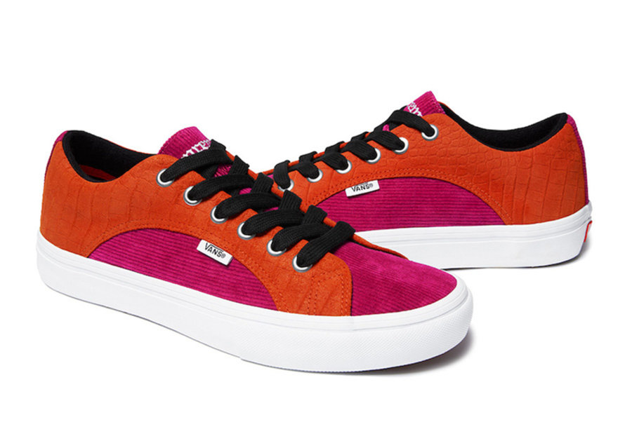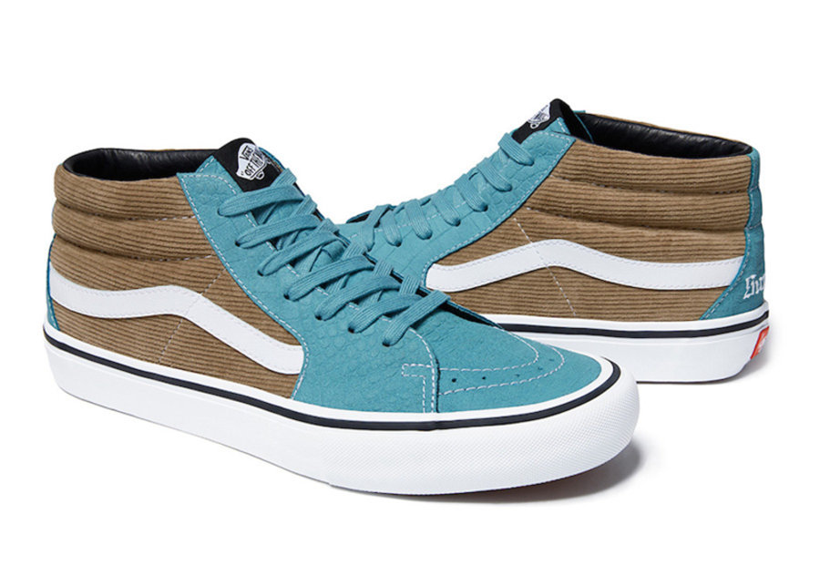 联名界大佬 Supreme 此次与滑板鞋品牌 Vans 合作,推出 SS18 鞋款系列。 包括 Vans Lampin 和 Sk8-Mid 两款鞋型,均由高级的鳄鱼纹皮革和灯芯绒材质打造。两款鞋型均推出蓝卡其、橙粉和黑黄三款配色,各具特色。Vans Lampin 鞋舌有 Supreme 字体刺绣,Sk8-Mid 的刺绣则在后跟。 该系列将于美国时间 6 月 21 日在 Supreme 欧美店铺及官网发售,6 月 23 日在日本发售。