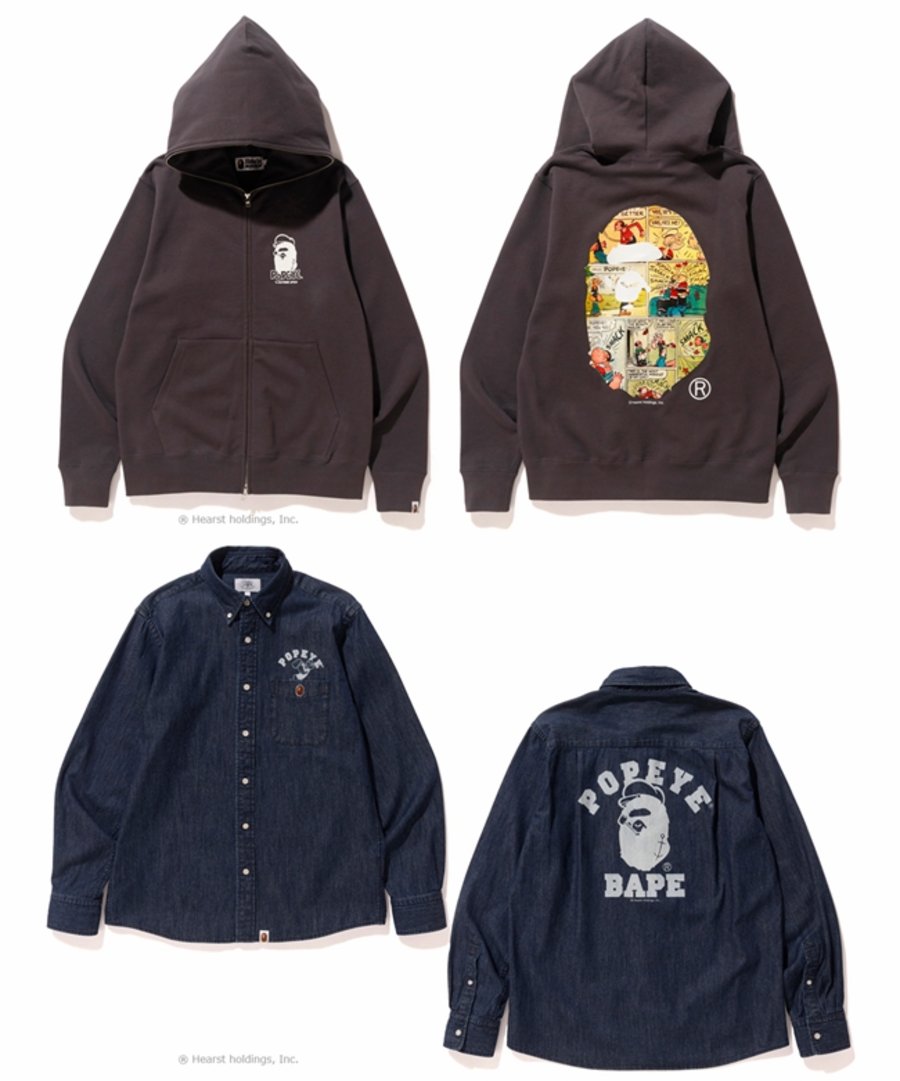 A BATHING APE® 与经典动画 《POPEYE®》 的首次合作今日正式登场,系列中不仅包含了帽衫、T 恤、衬衫等服饰,还拥有钟表、钥匙链、抱枕、帆布包等生活用品。据悉,这一系列将于 6 月 30 日在 BAPE® 各大门店开启发售,喜欢的朋友们可以准备入手了。