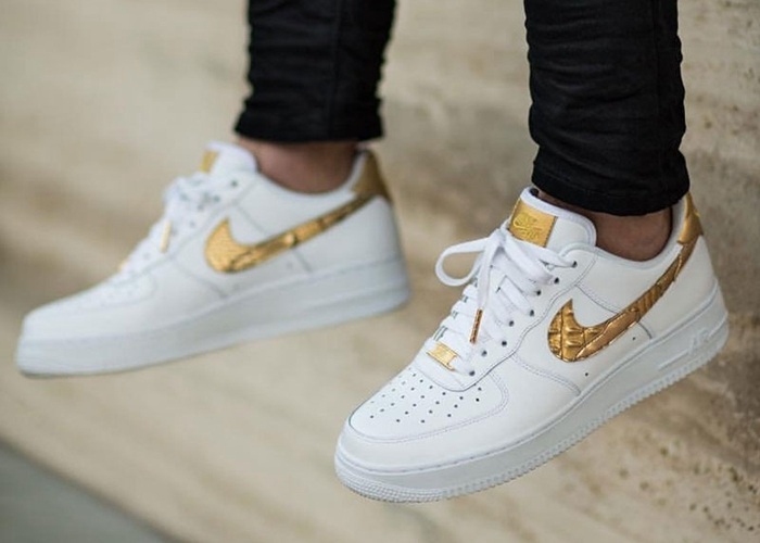 以纯白 AF1 为蓝本,分别在鞋侧 Swoosh、鞋带扣、鞋舌及后跟特别添加了 C 罗标志性的金色元素加持,并在内衬及后跟处绣有 C 罗签名和 CR7 字样彰显不凡气质,上脚回头率极高!