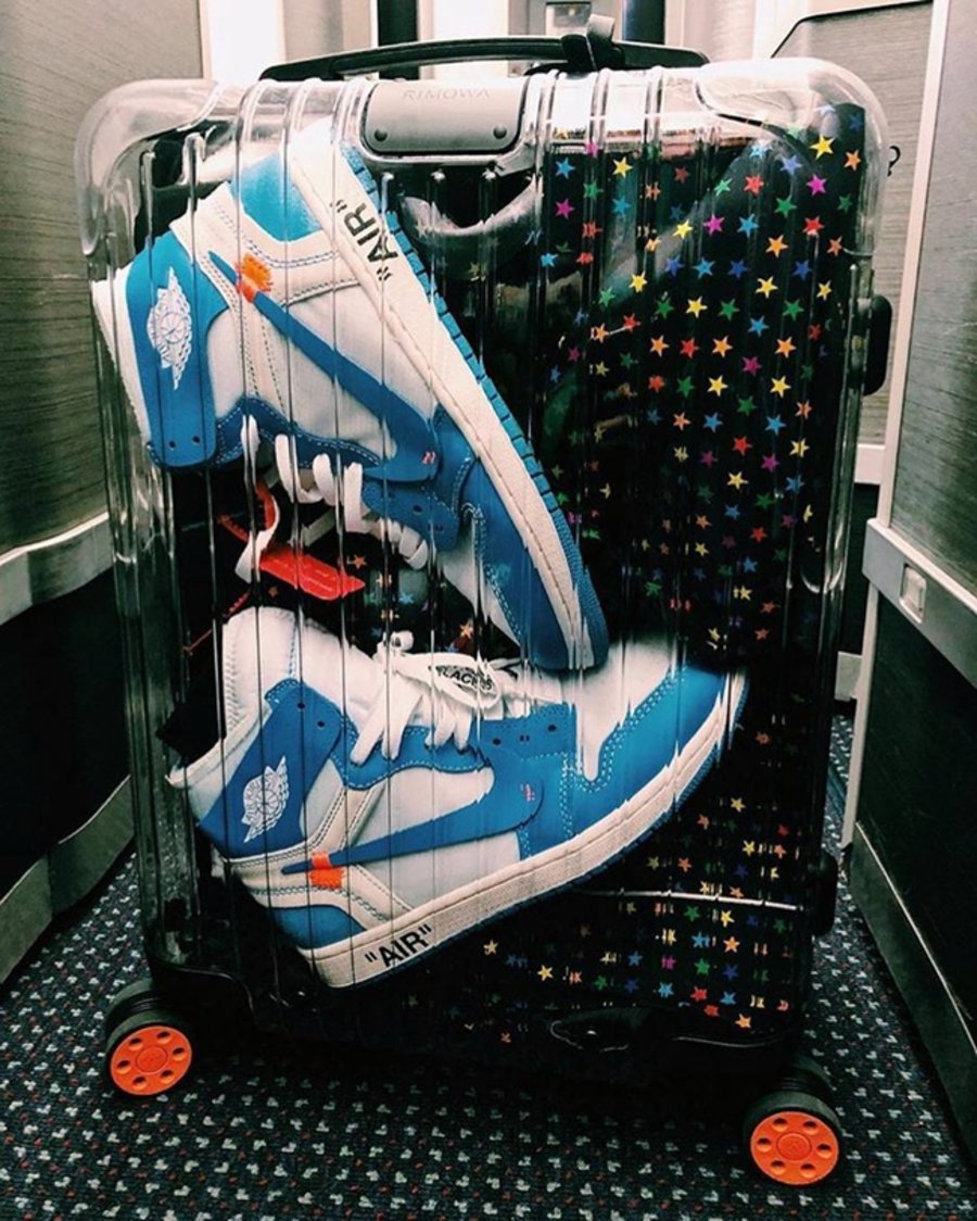 ▼ 图中比巨型 AJ1 更吸睛的,应该就是 OW x RIMOWA 的拉杆箱了