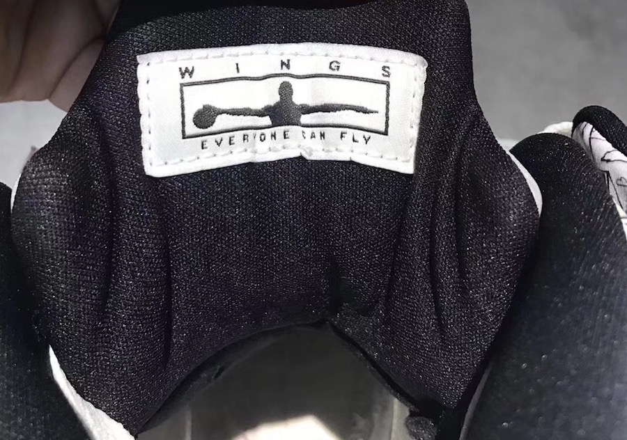 鞋款整体以白色为主调,鞋面上布满趣味涂鸦,经典的鞋网设计改为翅膀设计,细节中点缀清爽的湖绿色,鞋舌使用 3M 反光材质,鞋舌内侧还缝有经典的 “Wings” Logo,整体感觉极为浮夸,与前几双 Wings 系列的配色风格有着明显不同。