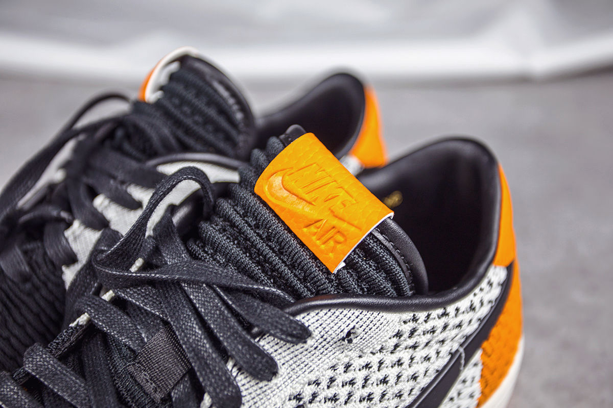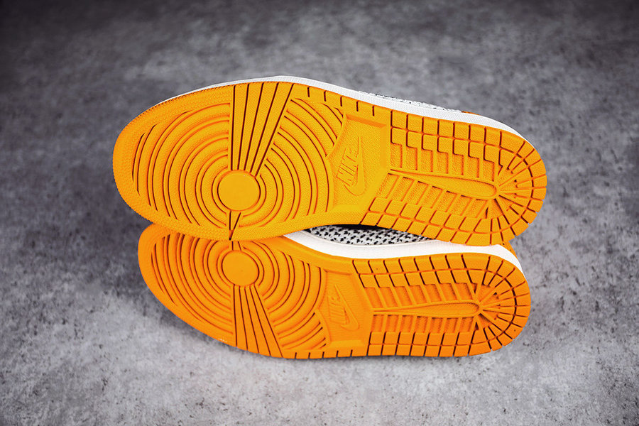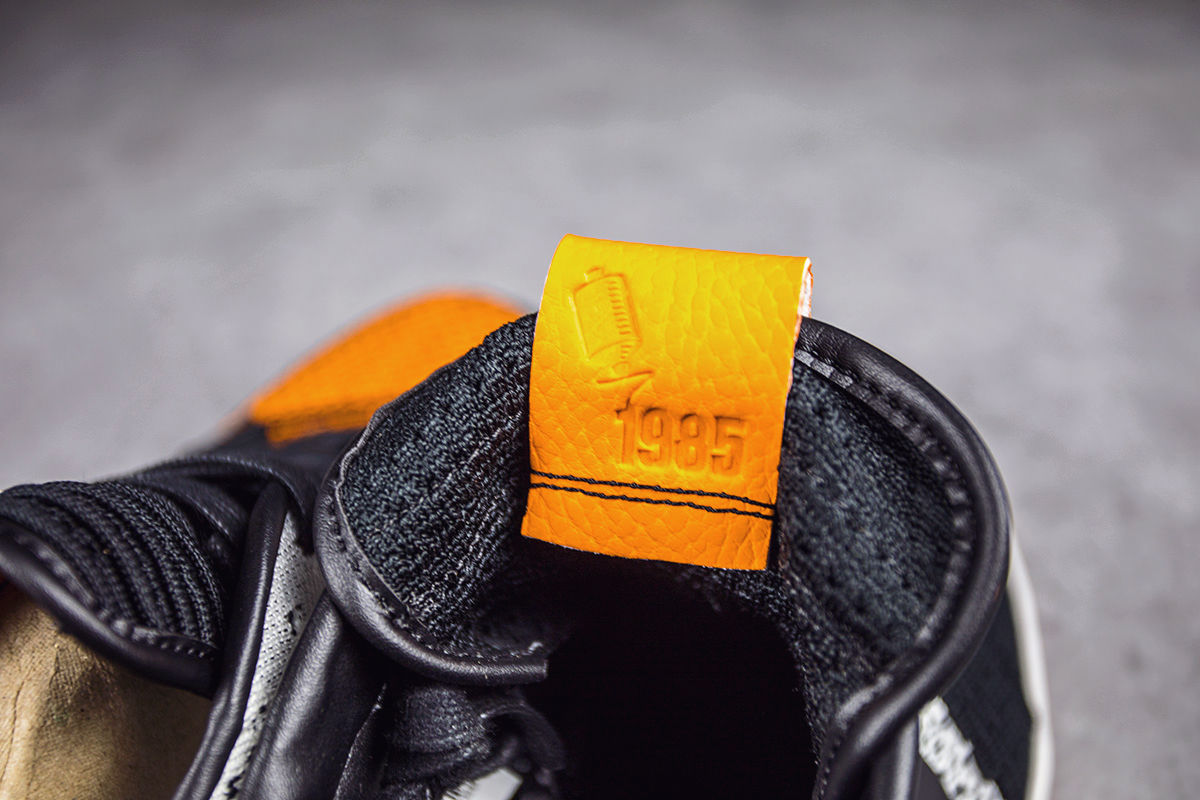 采用了同 “黑扣碎” Air Jordan 1 High 一样的配色方案,黑白橙三种颜色的搭配,营造了百搭又活力无限的亮眼效果。