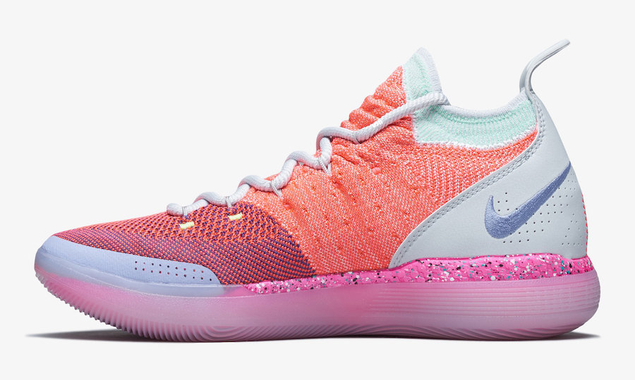 眼前的 Nike KD11 EYBL 以甜美活力作为视觉主线,多种色调的搭配也营造了丰富的视觉层次感受,让人眼前一亮,又颇为耐看!