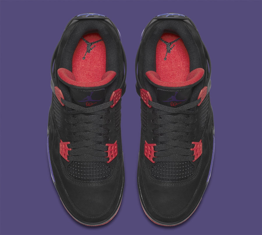 鞋面由质感出众的黑色磨砂皮革打造,鞋带扣与内衬采用猩红色点缀,风骚的紫色中底含有黑色泼墨,整体风格与 Air Jordan 7 猛龙如出一辙,极为讨好!