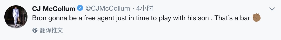 C.J.迈克勒姆则说,当詹姆斯的儿子出来打球时,他刚好成为自由球员!