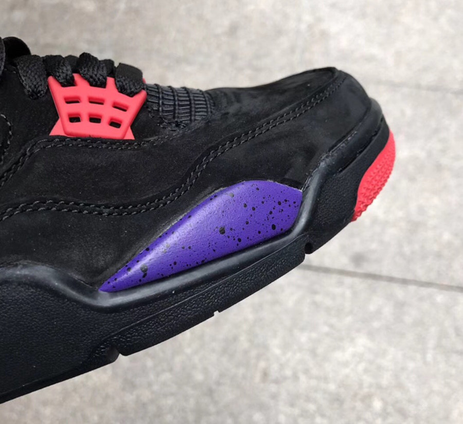 这款黑麂皮搭配紫红点缀的猛龙配色 AJ4 让人难以抗拒,广大鞋迷已经期待已久,希望这次跳票是最后一次。