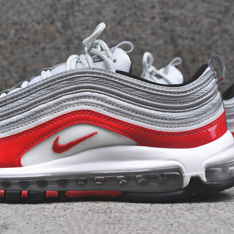 这双 Nike Air Max 97 铂金/红配色目前已经在海外地区发售,采用了鲜艳又光泽十足的红色漆皮环绕包裹,搭配铂金色的鞋身,这双鞋让人倍感清爽又格外醒目。 整体的活力指数不低,无论是夏日还是秋冬,这双鞋都是街头的眼球收割机,值得重点关注! 目前淘宝上已经有这款配色的售卖,市场价格并不高,性价比表现不错。 货号:921826-009