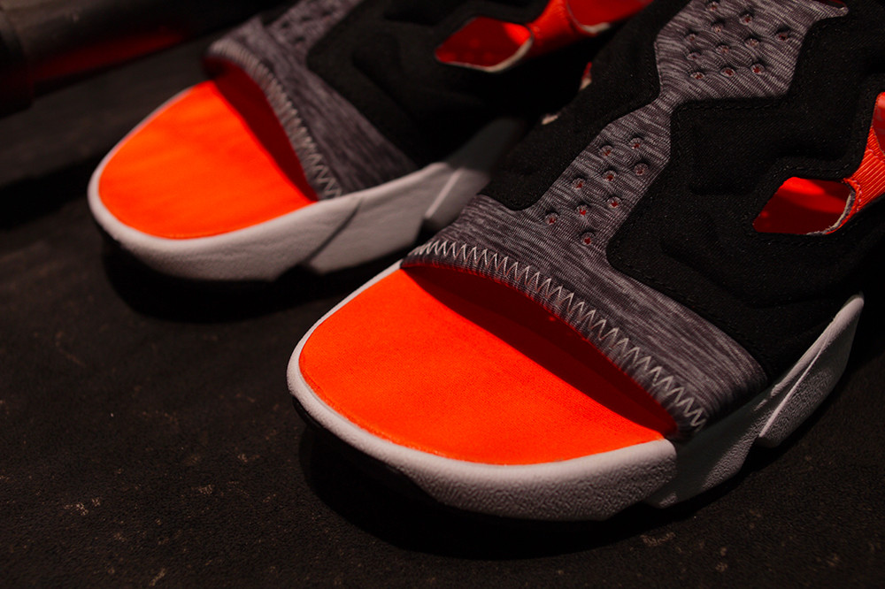 眼前这双名为 Reebok InstaPump Fury Sandal MXW 的三方联名新品,以经典充气跑鞋 InstaPump Fury 为蓝本,针对夏季的炎热天气,仅保留鞋身基本充气框架,鞋底则依旧维持原有蜂窝缓震结构,带来这双科幻前卫的功能拖鞋。