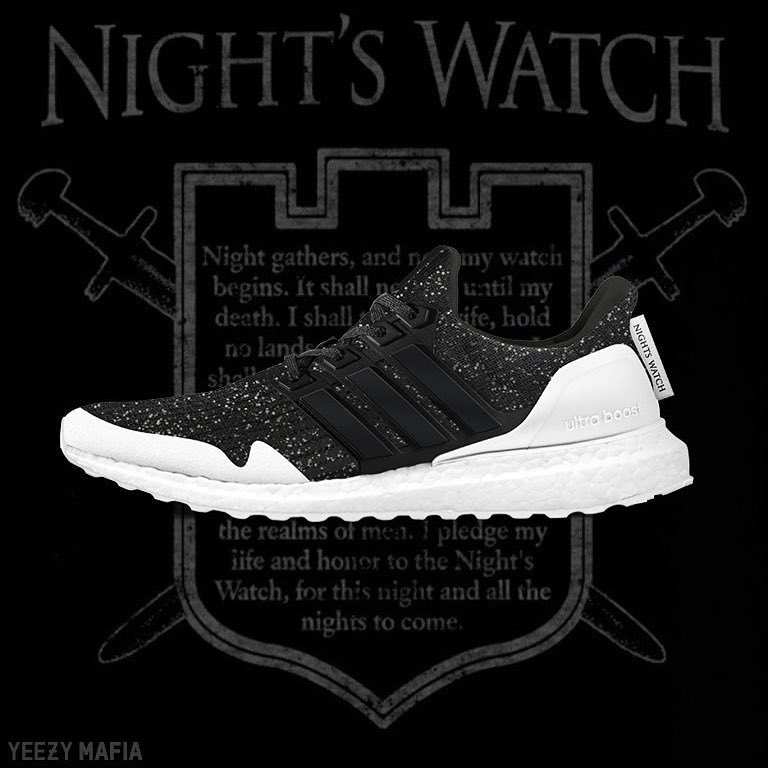 目前 《权利的游戏》 x adidas 的联名已经曝出四双配色,分别为史塔克家族、兰尼斯特家族、守夜人军团和今天曝出的异鬼,效果图中的鞋型也是此前从未出现过的全新 Ultra Boost,具体实物如何大家可以先期待一下。