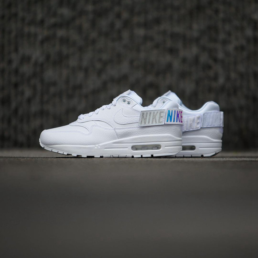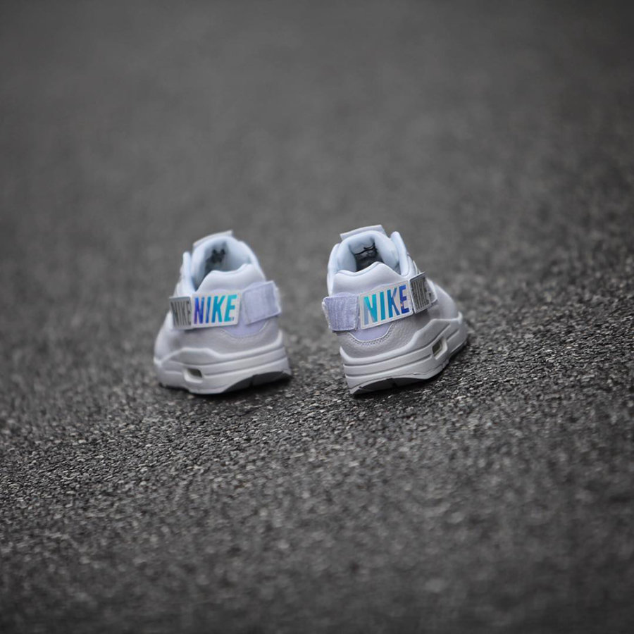 Air Max 1 虽然不能换勾,但后跟处也有魔术贴设计,可以贴上四款 “NIKE” 字体徽标,同样可玩性极高。