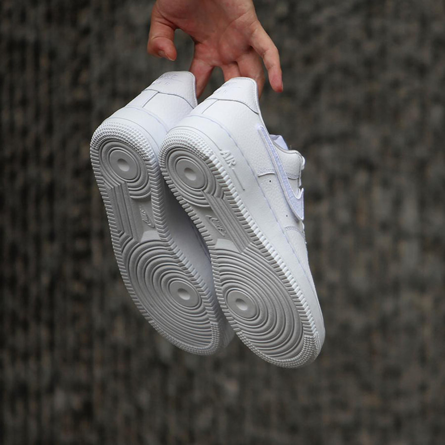 两款都以纯白配色装扮。Air Force 1 为换勾设计,与之前的换勾 AF1 不同的是内外侧的 Swoosh 为分离设计,随鞋附送多款闪亮的 Swoosh Logo,玩法更丰富。