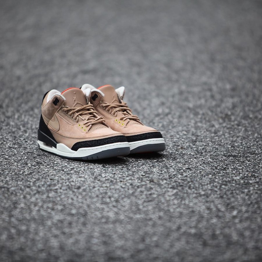 今年 Air Jordan 3 迎来了大量发售,不少新款接连发售,较为火爆的卡其色麂皮 Air Jordan 3 JTH “Bio Beige” 也将于八月发售。近日,球鞋摄影师 @gc911 率先带来它的实物近览。