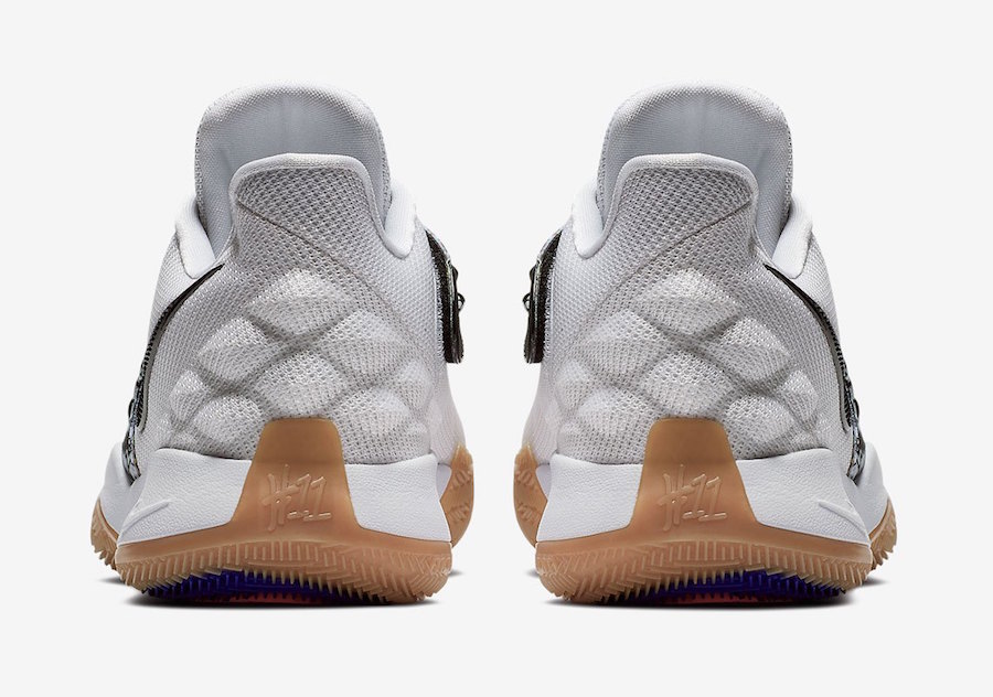 这双 Kyrie 4 Low 看起来与 Kyrie 4 有所改变,低帮造型加入绑带设计,鞋面采用简洁的黑白色调,在绑带处加入涂鸦元素,并搭载生胶外底,而缓震配置应该还是延续之前的后掌 Zoom 缓震!