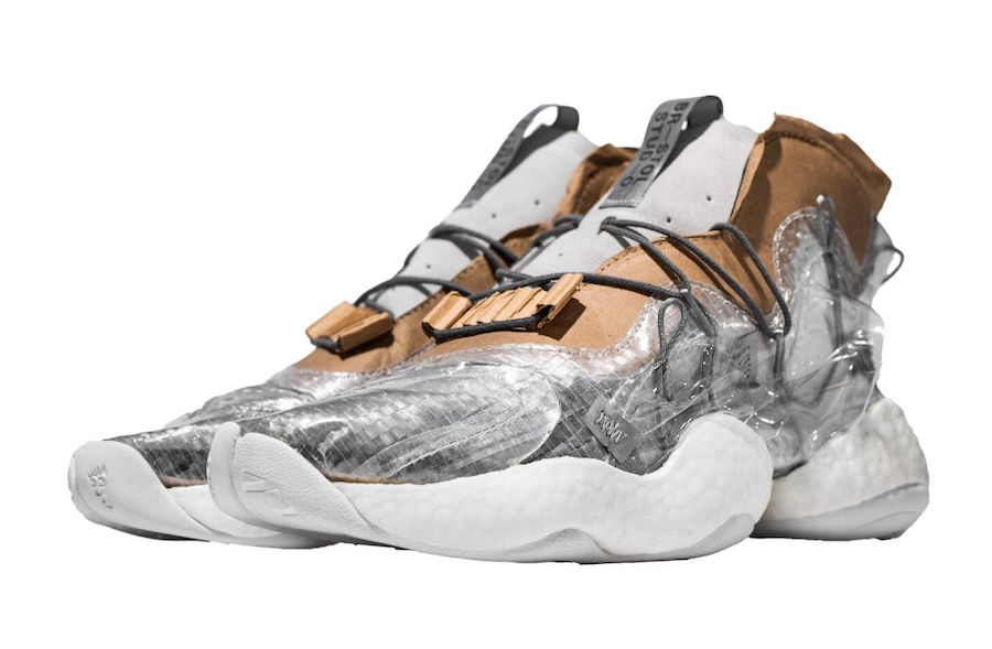 球鞋定制大师 The Shoe Surgeon 运用解构手法将铝、PVC、纸板、纸张等非传统材质进行了一番 DIY,而 Crazy BYW 的鞋身主体则采用了皮革、麂皮与网眼的结构,同时夸张的 Boost 中底也保留不变。