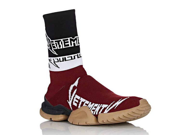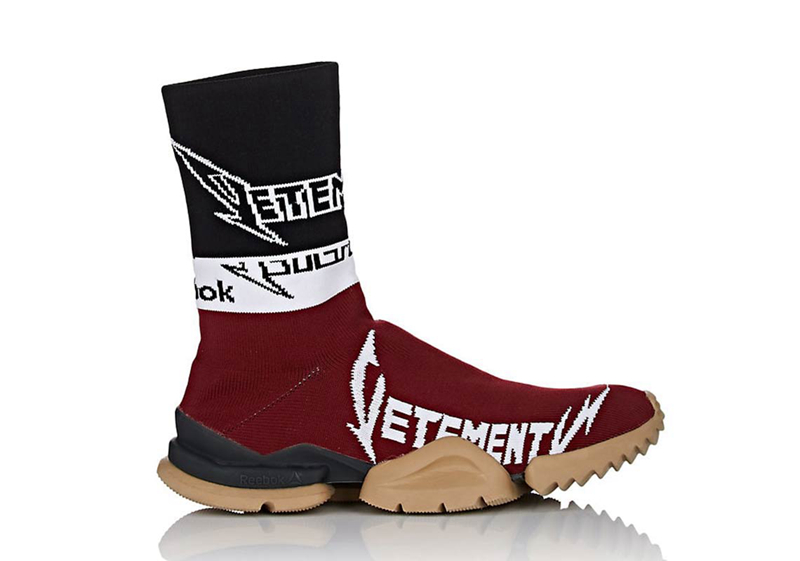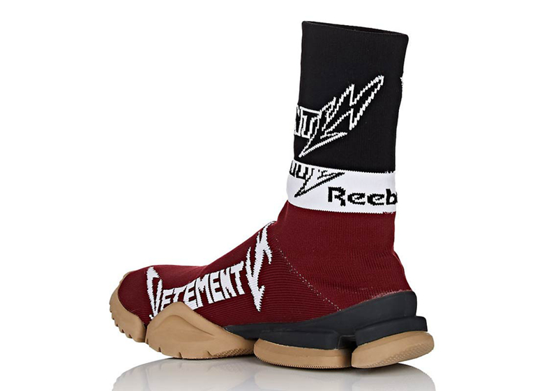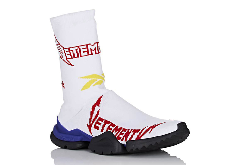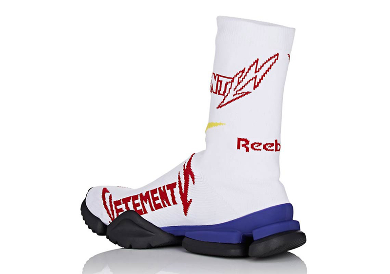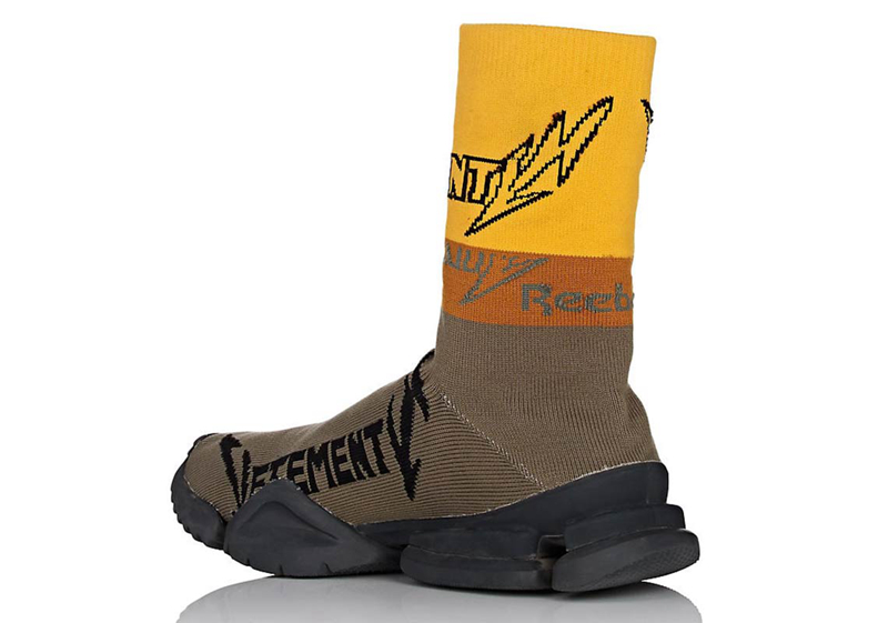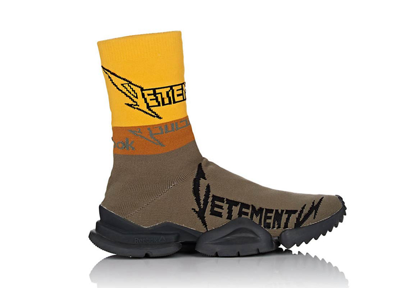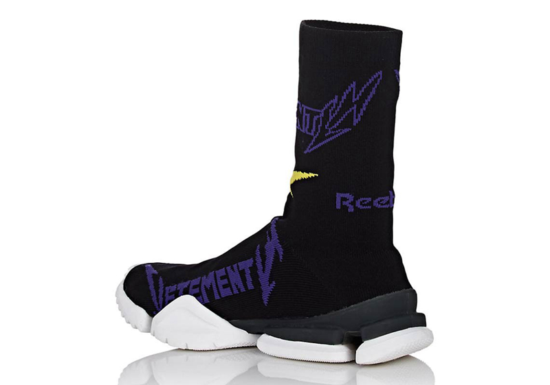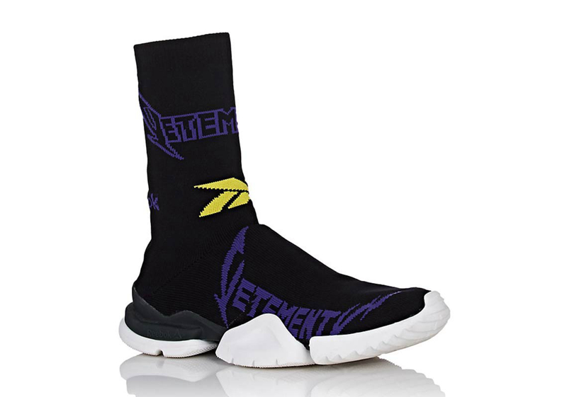 最近 Vetements 与 Reebok 再次带来合作鞋款 Sock Runner ,共 4 双配色,高筒袜子编织鞋面结合分块式大底,保证了鞋款的舒适性。