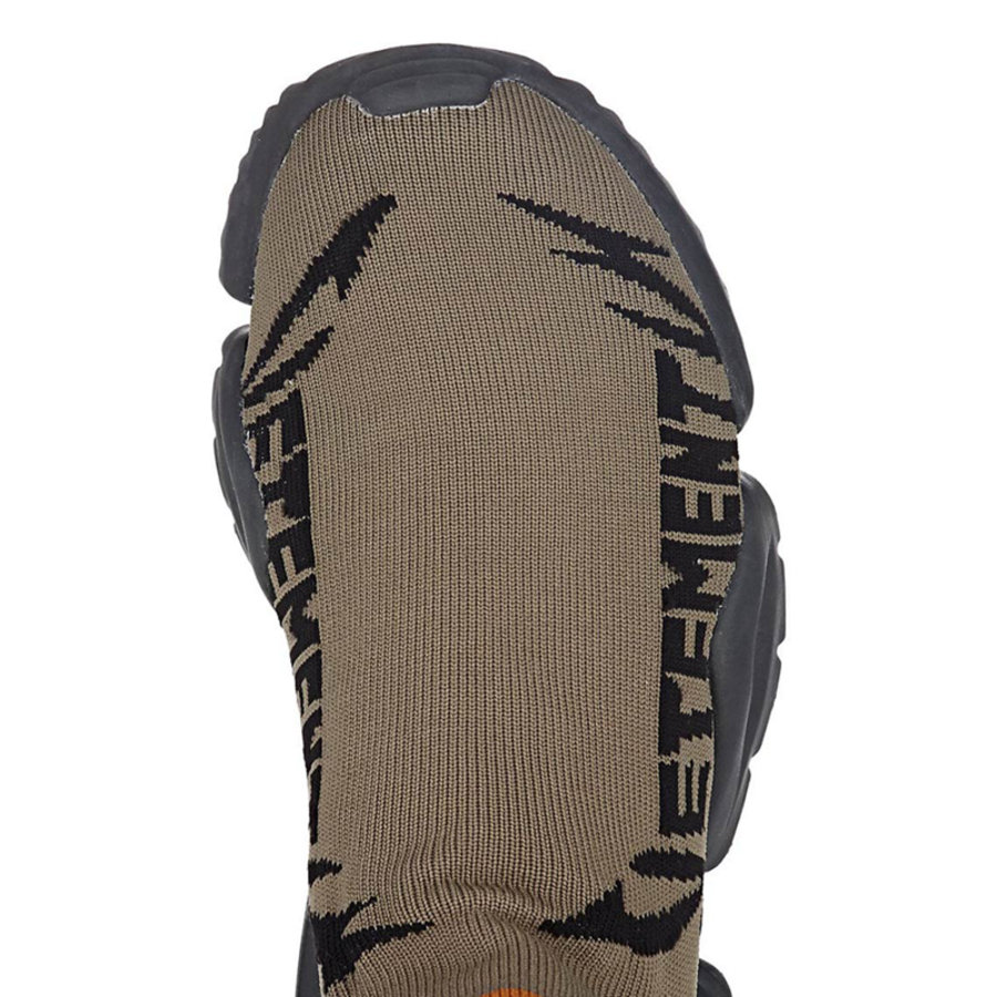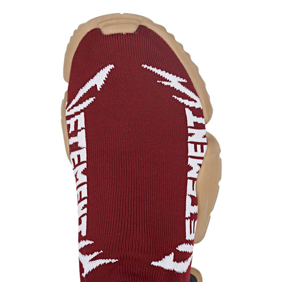 鞋面编织融入了品牌双方 Logo 元素,不仅带回了 Reebok 经典的弧线 Logo 设计,且其中 Vetements 的 Logo 非常醒目,让人一眼看出是摇滚气息浓郁的 Metallica 风格字体。