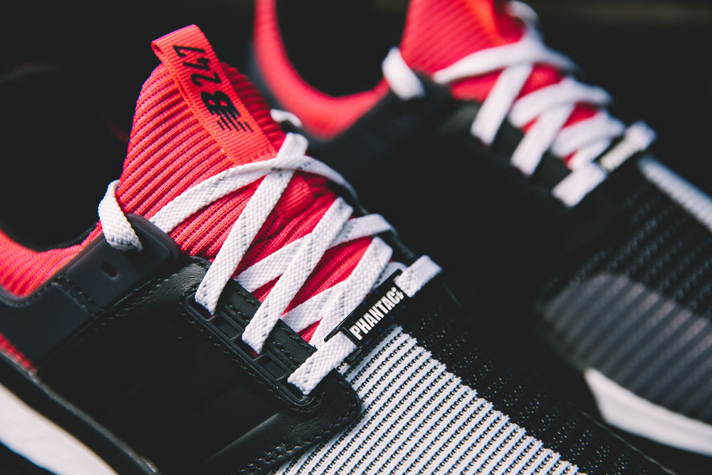 三双配色的风格迥异,用料与设计细节都截然不同,黑白阴阳配色的鞋面使用编织材质打造,鞋口周围点缀亮眼的粉红色,带有 PHANTACi Logo 的鞋带扣彰显联名身份,鞋垫印花同样细节十足。