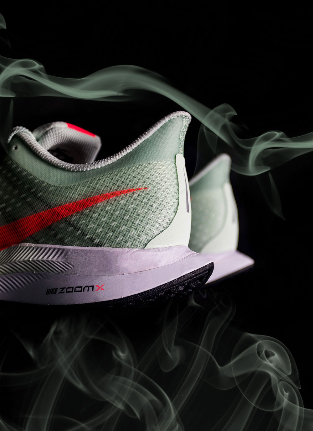 Nike ZoomX 是 Nike 公司迄今为止最轻质的泡棉材质,其重量大约仅有其他跑鞋一般的重量,这也使得 Zoom Pegasus Turbo 的鞋身拥有超轻的属性。